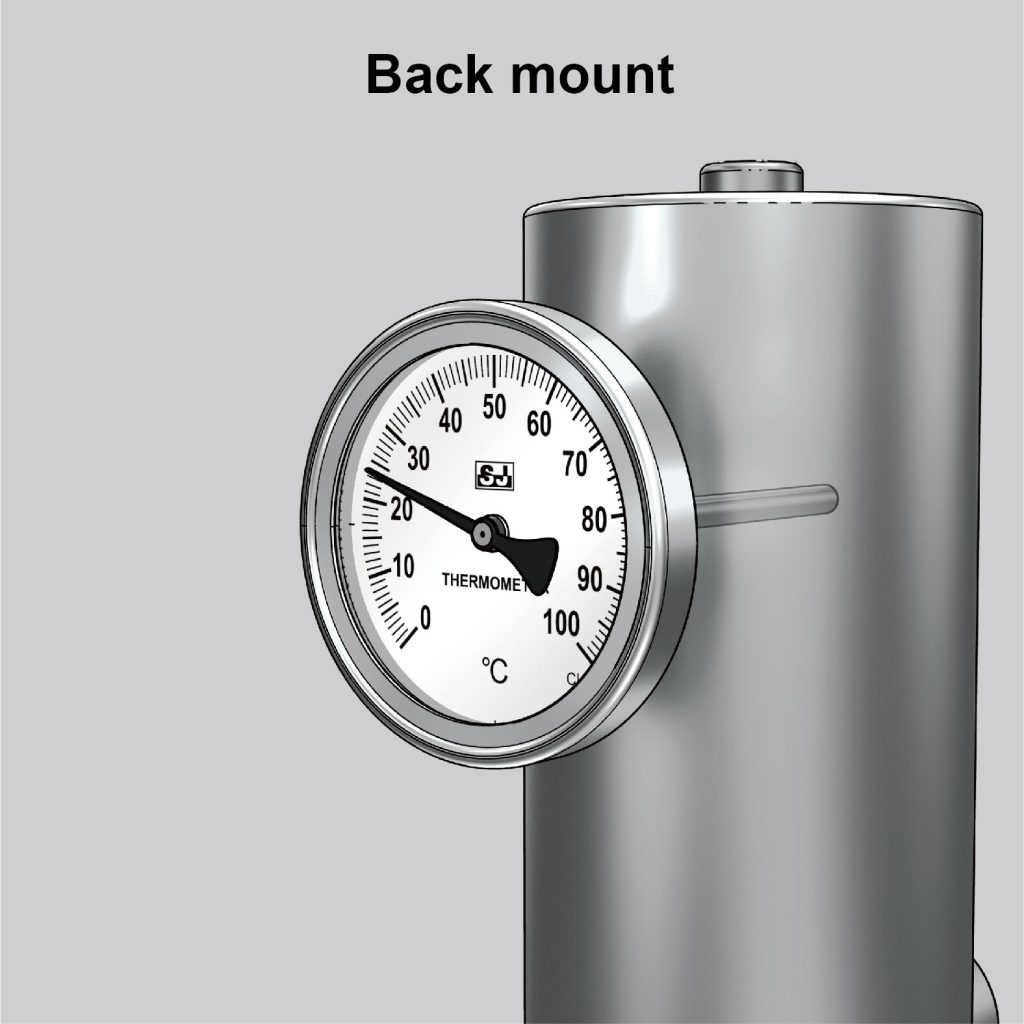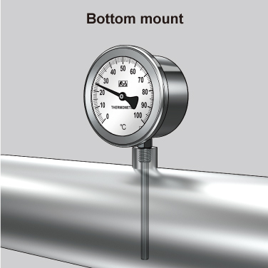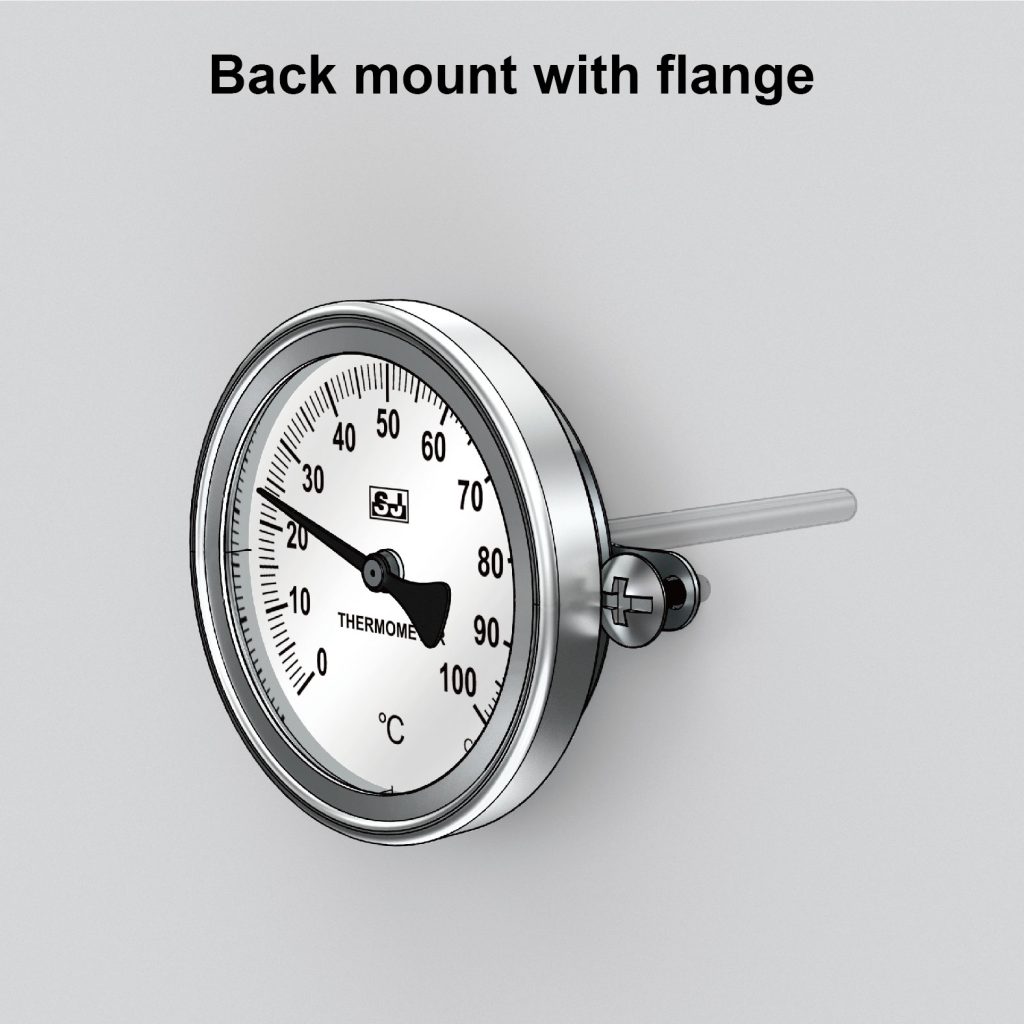 Dial thermometers can primarily be classified into three types based on their installation method and connection location: Bottom mount, back mount, and adjustable angle. The back mount type can further be categorized into flanged and non-flanged, depending on the presence of a flange.
