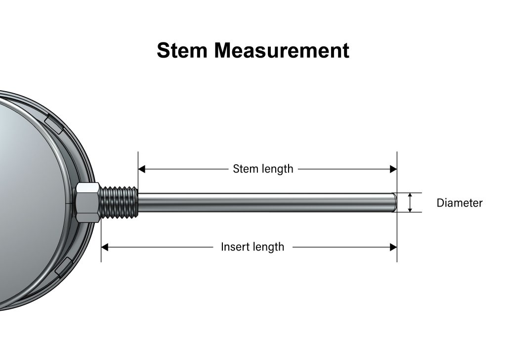 The length of the stem of a dial thermometer primarily depends on the process medium or container you intend to measure.