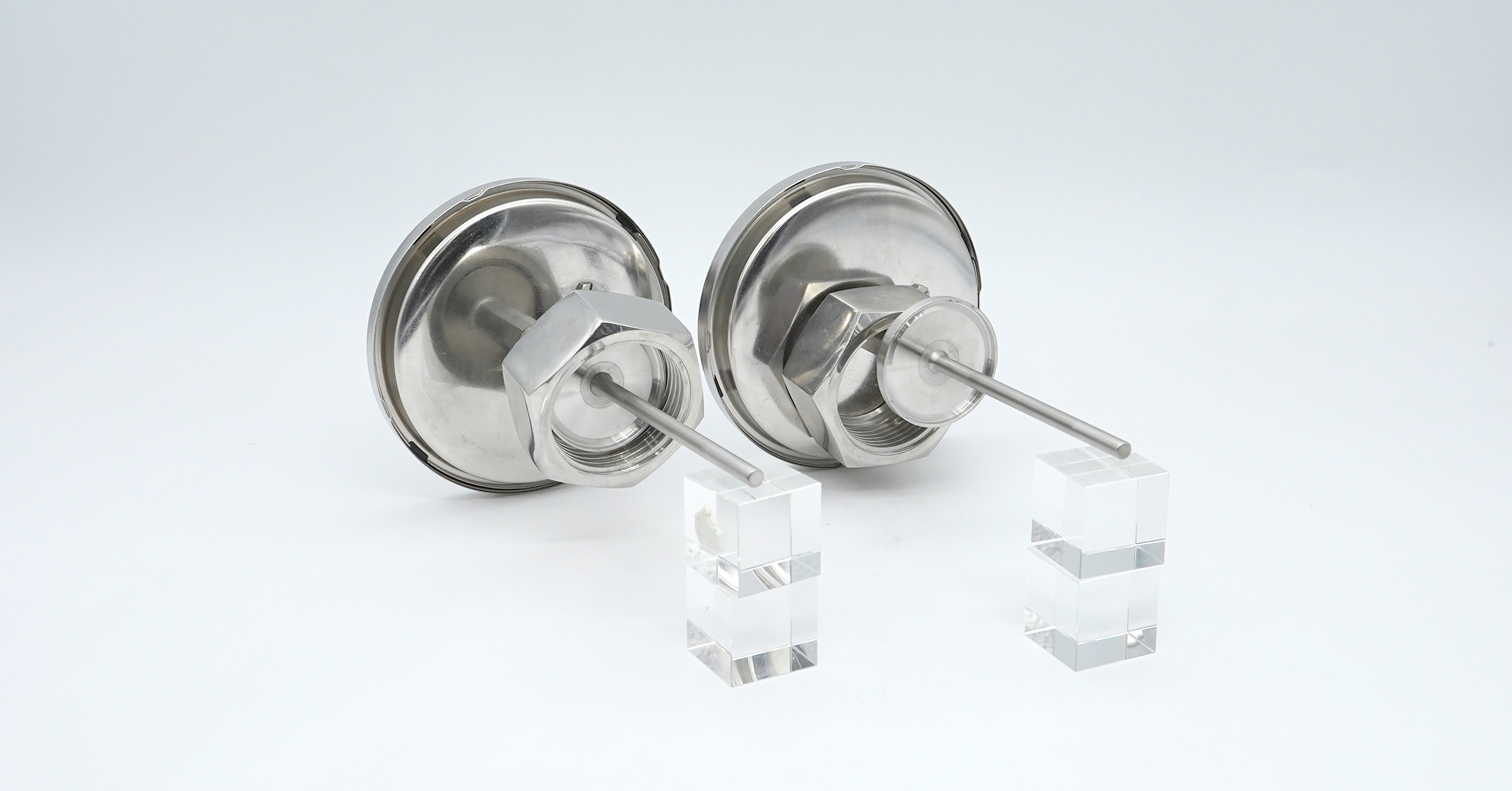 Connection designs Male thread, plain stem, compression fitting (sliding on stem), union nut and loose threaded connection, male nut, union nut, sanitary end cap, metallic sheet with dual hole, flange on stem
