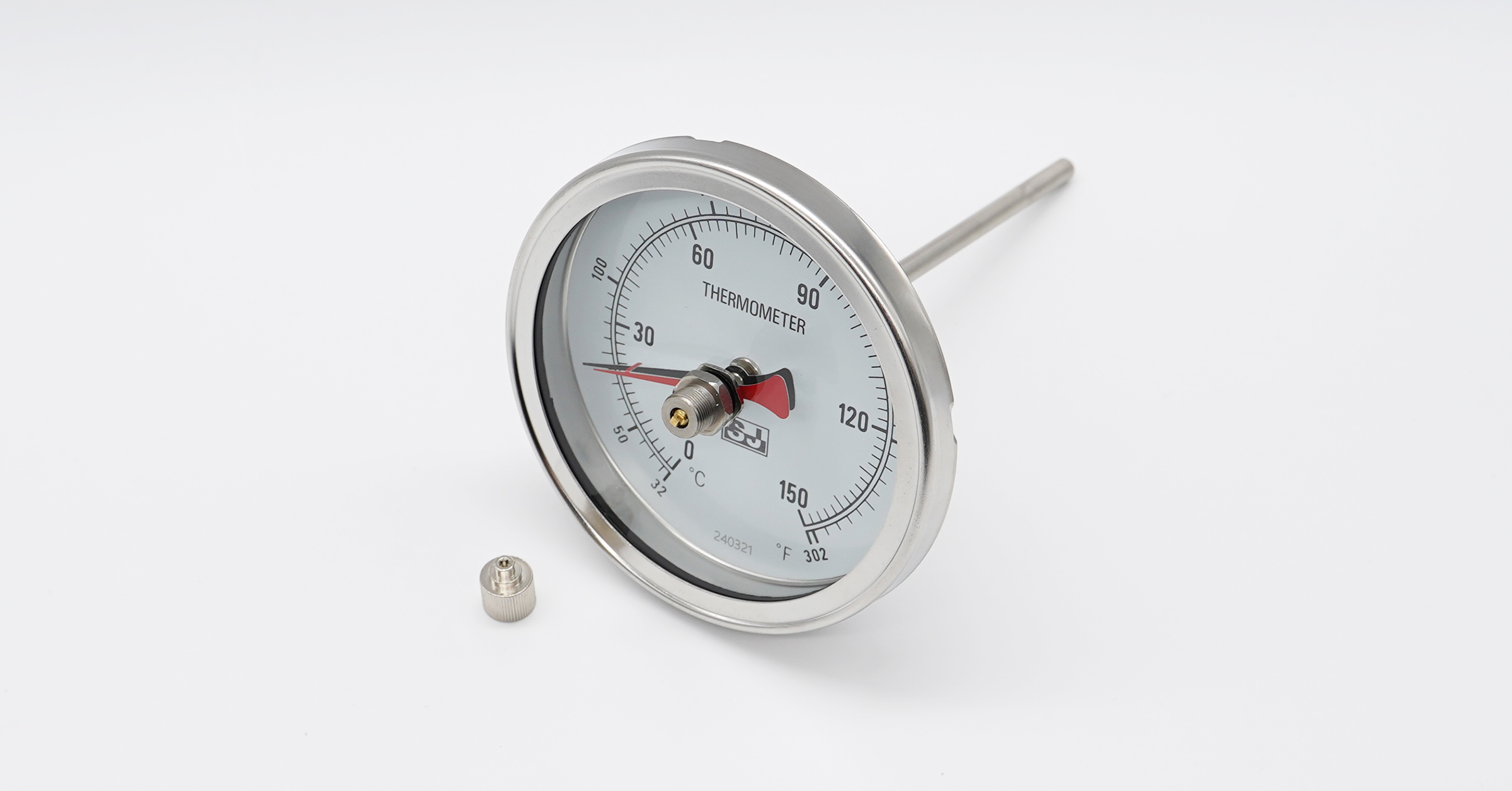 It supports multiple connection types—including male thread, plain stem, compression fitting, union nut, sanitary end cap, and flange designs—allowing flexible installation across different systems. The thermometer is available in sizes from 1.5″ to 6″, with customizable stem lengths and diameters to accommodate diverse installation requirements. Optional features include glycerine filling, adjustable pointers, drag pointers, thermowells, and zero-adjustment screws, offering enhanced durability and operational convenience.