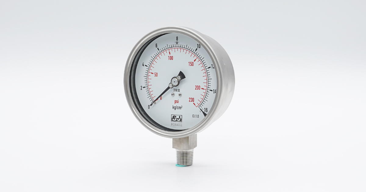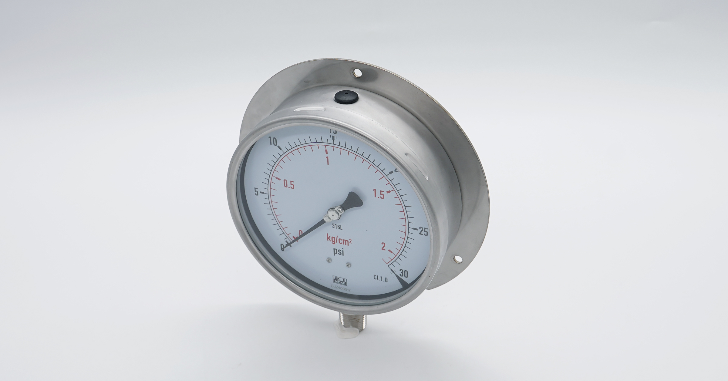 The PRDR.W is a fully stainless steel pressure gauge formed with seamless laser welding, providing excellent leak prevention along with enhanced safety features such as a vent valve and blow-out back. Available in 304 or 316 stainless steel housings with 316L process connections, it supports ranges from 0–0.6 kg/cm² up to 1600 kg/cm², offering accuracy up to ±1.0% F.S. for 4″ and 6″ models. Designed for harsh environments such as petrochemical plants, power engineering, and wastewater treatment, it supports glycerine or silicone filling and multiple mounting options including bottom, back, and flange types. Its specifications match those of WIKA 232.50/233.50, making it a reliable alternative to major international brands.